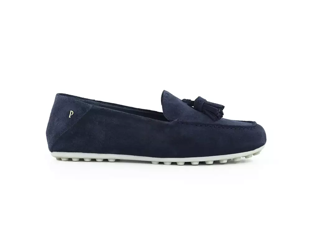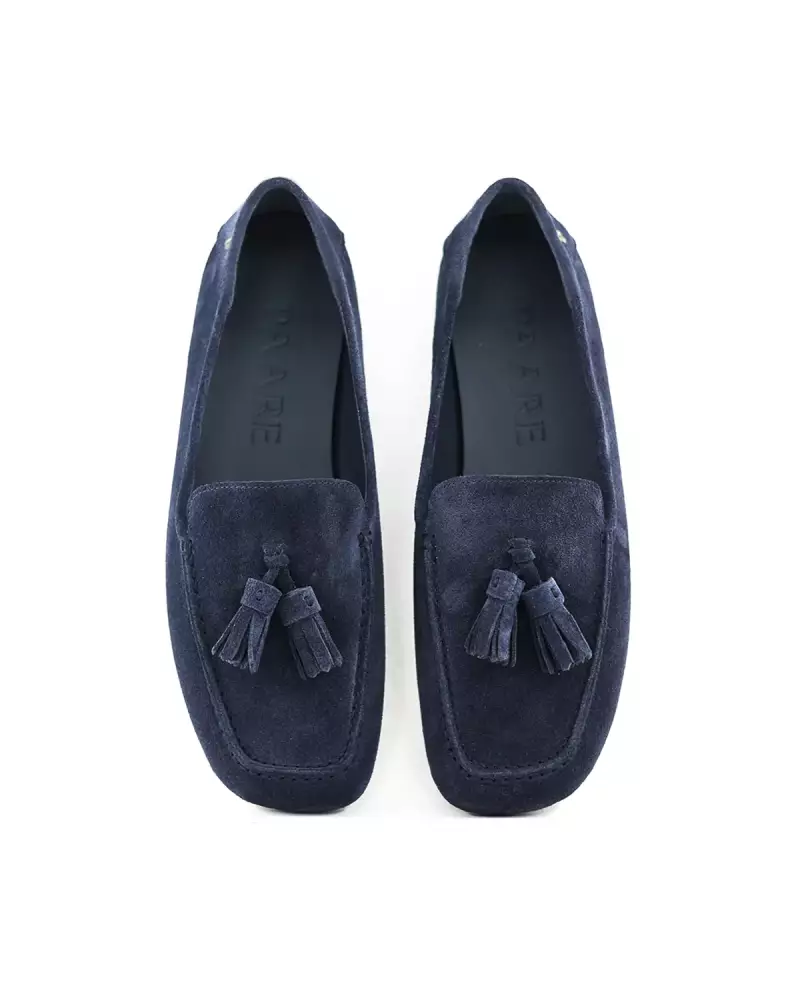 Süet loafer, dikdörtgen burunlu, püskül detaylı, kauçuk taban, yanlarda metal detaylı, rahat ve sportif tasarım